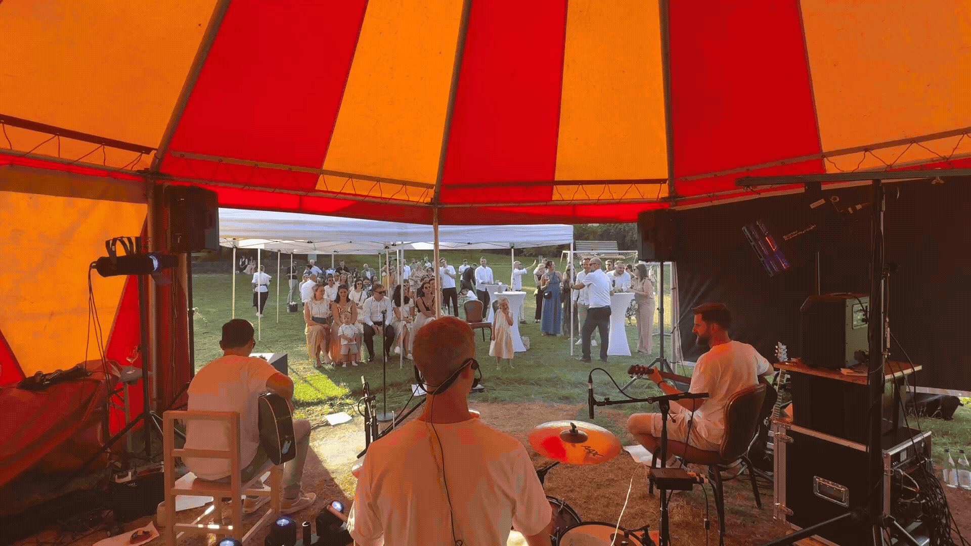 Ein perfekter Juni-Tag, strahlender Sonnenschein und eine Feier voller Energie – so lässt sich die Hochzeit beim Zirkus Giovanni in Bamberg beschreiben. Licky who?! war live dabei und sorgte dieses Mal unplugged sowie kompletter Ton- und Lichttechnik für ein unvergessliches Erlebnis.